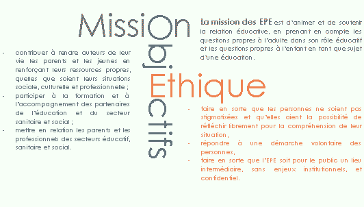 Le projet des Ecoles des Parents et des Educateurs (en tant que mouvement) s’inscrit dans une double famille de référence : une référence à la démarche de l’Education populaire, une référence au champ social et à la relation d’aide.