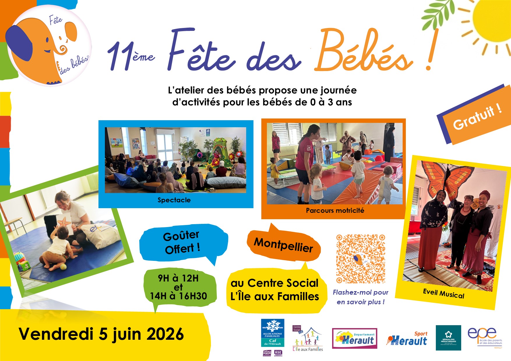 La onzième édition de la « Fête des Bébés » se déroulera le vendredi 5 juin 2026 au Centre social Caf « L’Île aux Familles »