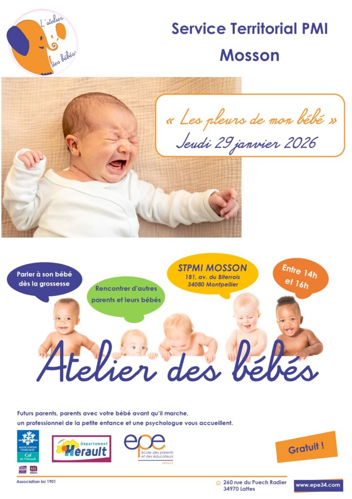 Parents, venez avec vos bébés partager un moment de convivialité avec d’autres et avec des intervenantes de l’Ecole des Parents et des Educateurs de l’Hérault et de la PMI.