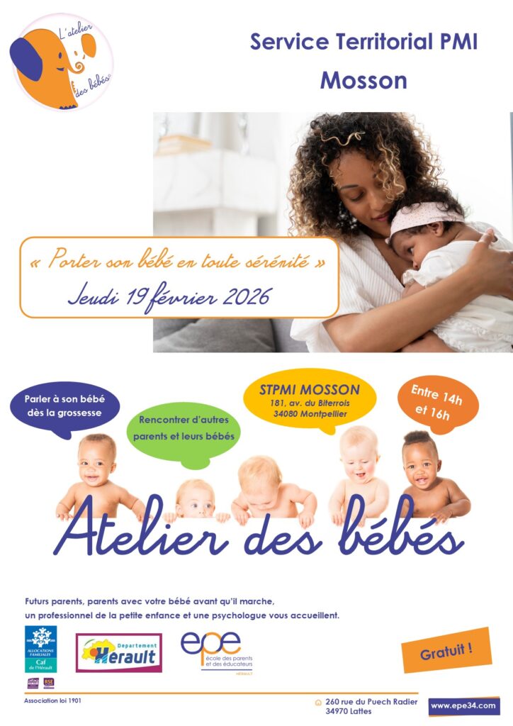 Parents, venez avec vos bébés partager un moment de convivialité avec d’autres et avec des intervenantes de l’Ecole des Parents et des Educateurs de l’Hérault et de la PMI.